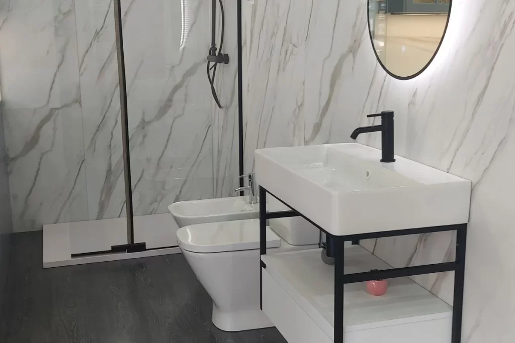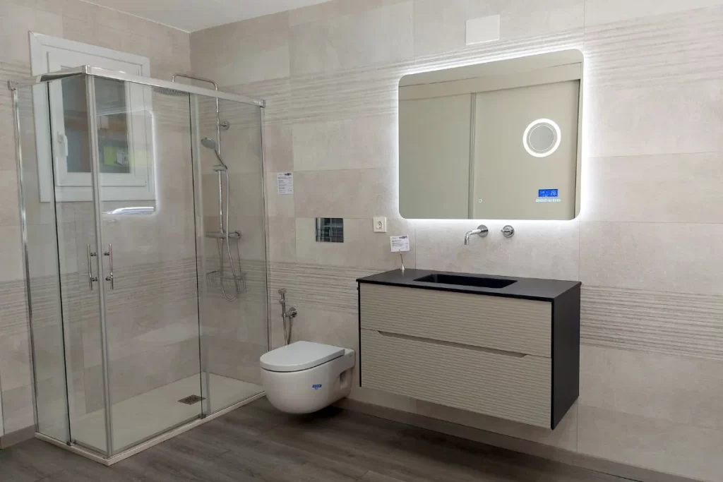 Disponemos de 150 m² de exposición, donde podrás ver diferentes ambientes de baño, materiales y acabados. Te invitamos a visitarnos cuando quieras; estaremos encantados de atenderte y ayudarte a diseñar el baño que mejor se adapte a ti.